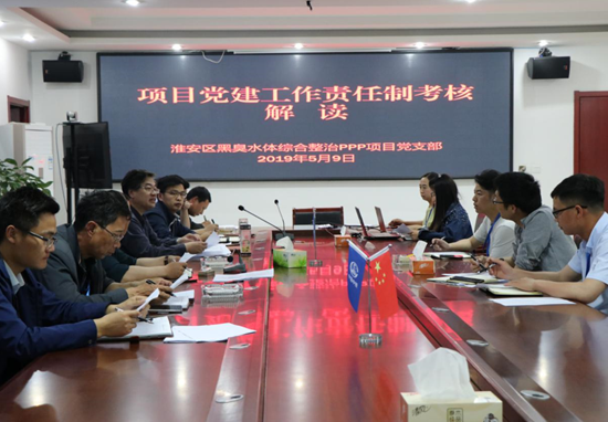 5月9日,淮安區(qū)黑臭水體綜合整治PPP項(xiàng)目黨支部解讀“黨 建工作責(zé)任制考核”,開啟項(xiàng)目“周培訓(xùn)”第一課,項(xiàng)目黨支部書記授課。