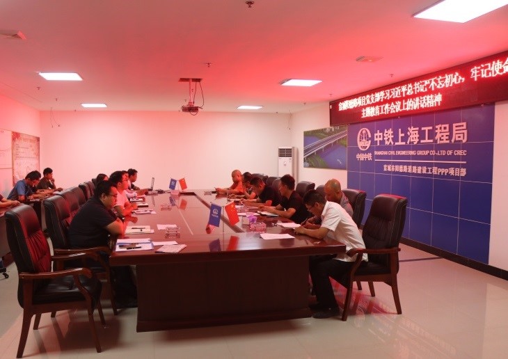 ??6月17日,宣城市陽德路道路建設(shè)工程ppp項(xiàng)目黨支部開展“學(xué)習(xí)習(xí)近平總書記‘不忘初心、牢記使命’主題教育工作會(huì)議上的講話精神”專題黨課。項(xiàng)目黨組織負(fù)責(zé)人主持學(xué)習(xí),項(xiàng)目部全體員工參加。
