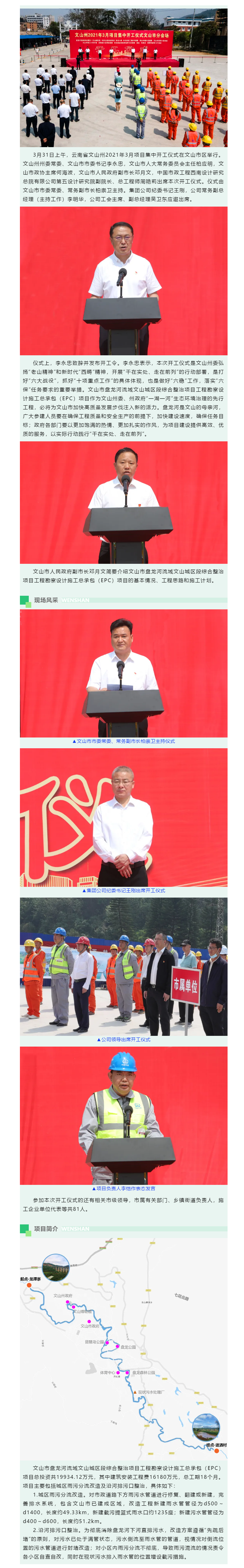 文山市盤龍河流域文山城區(qū)段綜合整治項(xiàng)目工程勘察設(shè)計(jì)施工總承包(EPC)項(xiàng)目開工