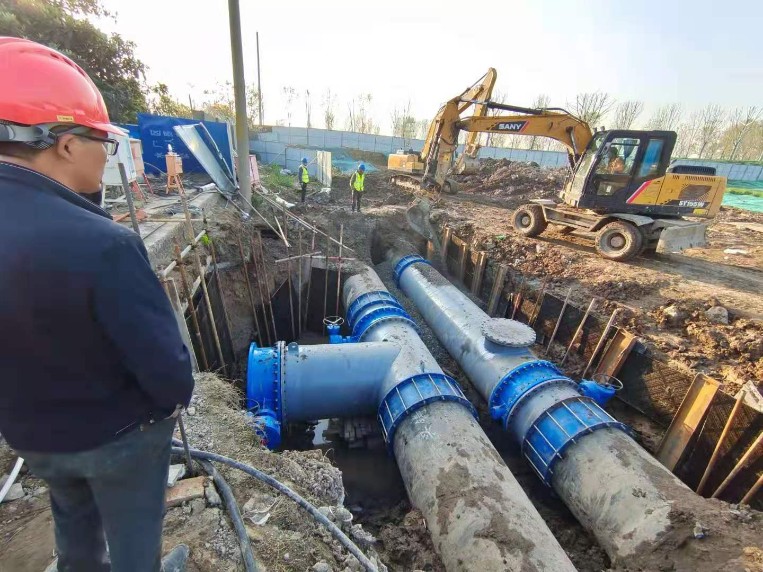 4月8日,南京浦口水廠深度處理工程項目8小時完成新建沉清池2根DN1200進水管道與水廠原水管道接駁。