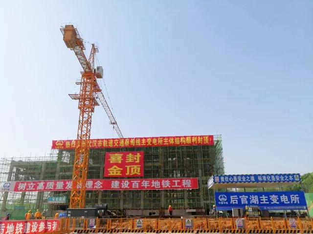 武漢市軌道交通蔡甸線七標后官湖主變電所主體結構順利封頂